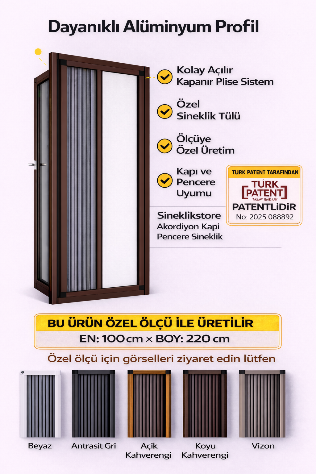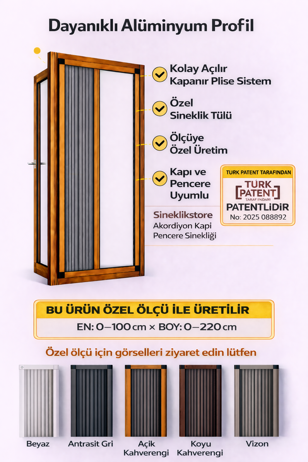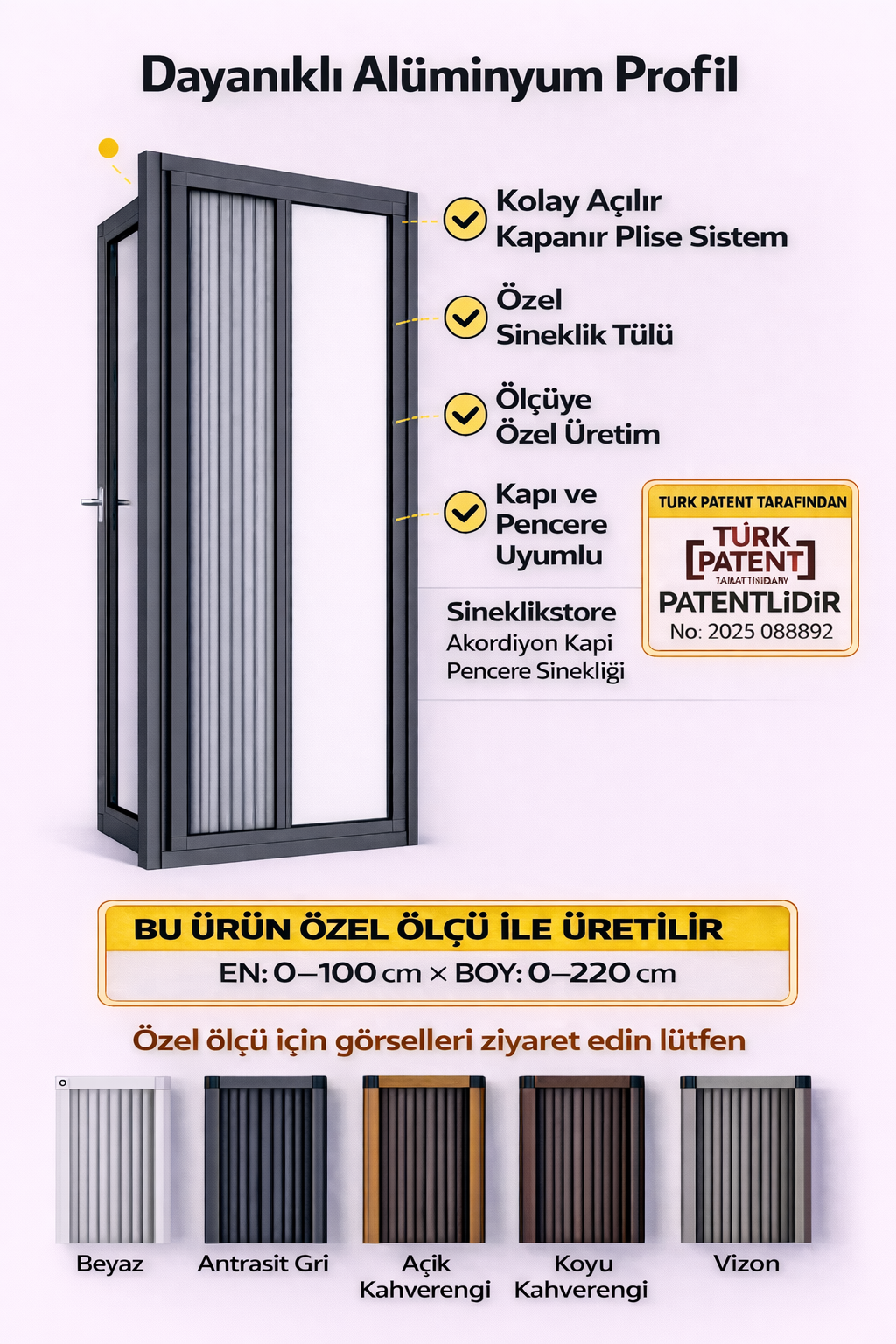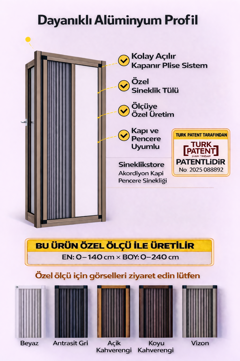 Sineklikstore.com, Sineklikstore.com is a leading brand that makes your homes more comfortable and livable with its fly screen solutions. Known for its wide product range and high-quality service, Sineklikstore.com is here to meet all your window fly screen needs. Our wide range of options, including pleated fly screens, double pleated fly screens, thresholdless fly screens, and curtained fly screens, offer excellent solutions to your window fly screen needs. Manufactured using high-quality aluminum profiles and durable pleated tulles, these products are long-lasting and aesthetically pleasing.